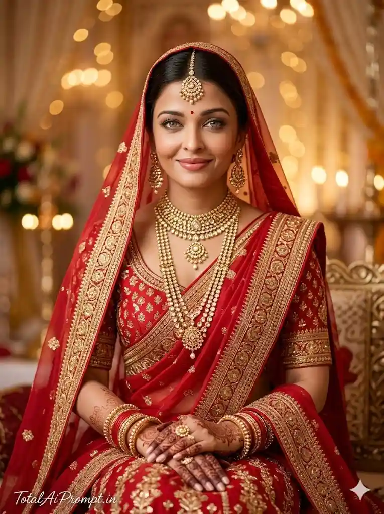 Aishwarya Rai Lehenga Prompt – Cinematic Royal Bridal Portrait with Perfect Face